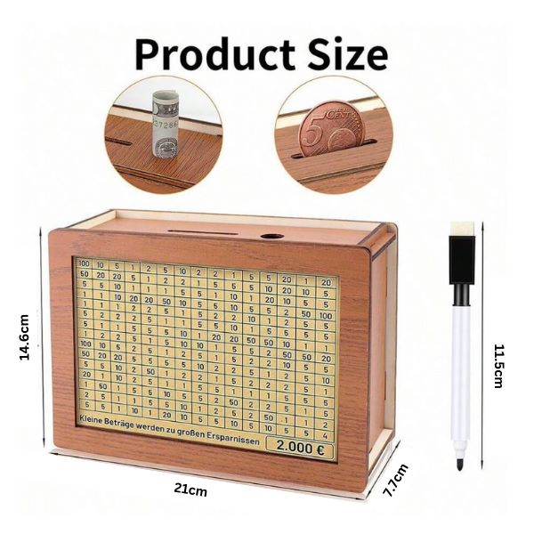 Configurați cutia de economii COINSAVE în câteva minute! Markerul și fișele de economii incluse fac personalizarea ușoară. Este un design elegant care se integrează perfect în casa sau biroul dumneavoastră.