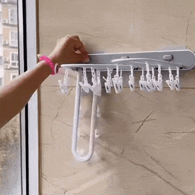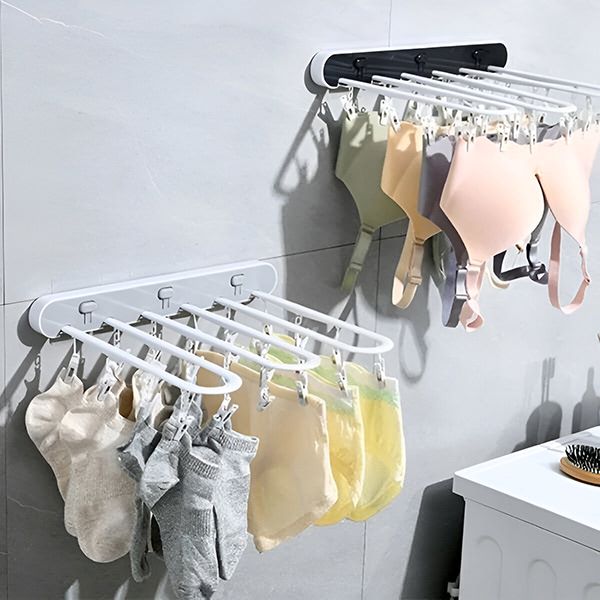 Acest suport se desface pentru a usca mai multe articole și se pliază pe perete atunci când nu este utilizat, păstrând spațiul ordonat și eficient.