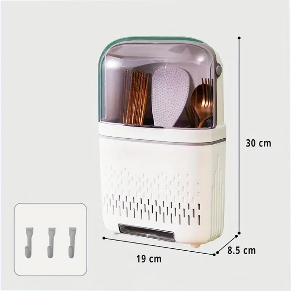 🧹 Design rezistent la praf cu un capac pentru a păstra ustensilele curate.