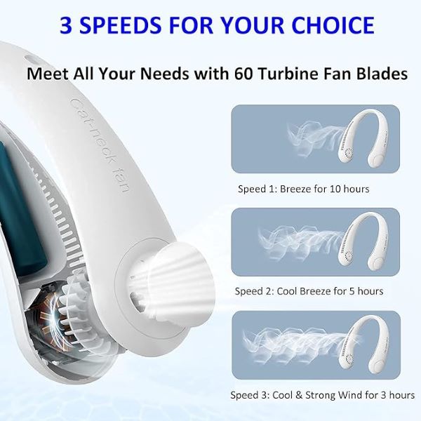 Ventilatorul oferă o experiență fără mâini, agățându-se comod în jurul gâtului tău. Acest dispozitiv practic te va menține răcorit și revigorat în zilele și seriile calde.